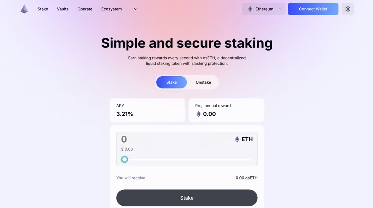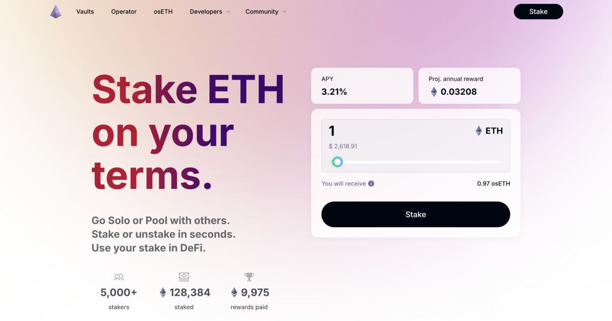 - osETH: osETH 是一种流动性质押代币,可为其持有者累积 ETH 奖励。它可以在 DeFi 中用于交易质押的 ETH 并获得额外奖励。osETH 由想要在 DeFi 中使用其权益的 Vault 中的质押者铸造。任何人都可以将他们的 ETH 换成 DeFi 中的 osETH,通过持有代币开始赚取 ETH 奖励。