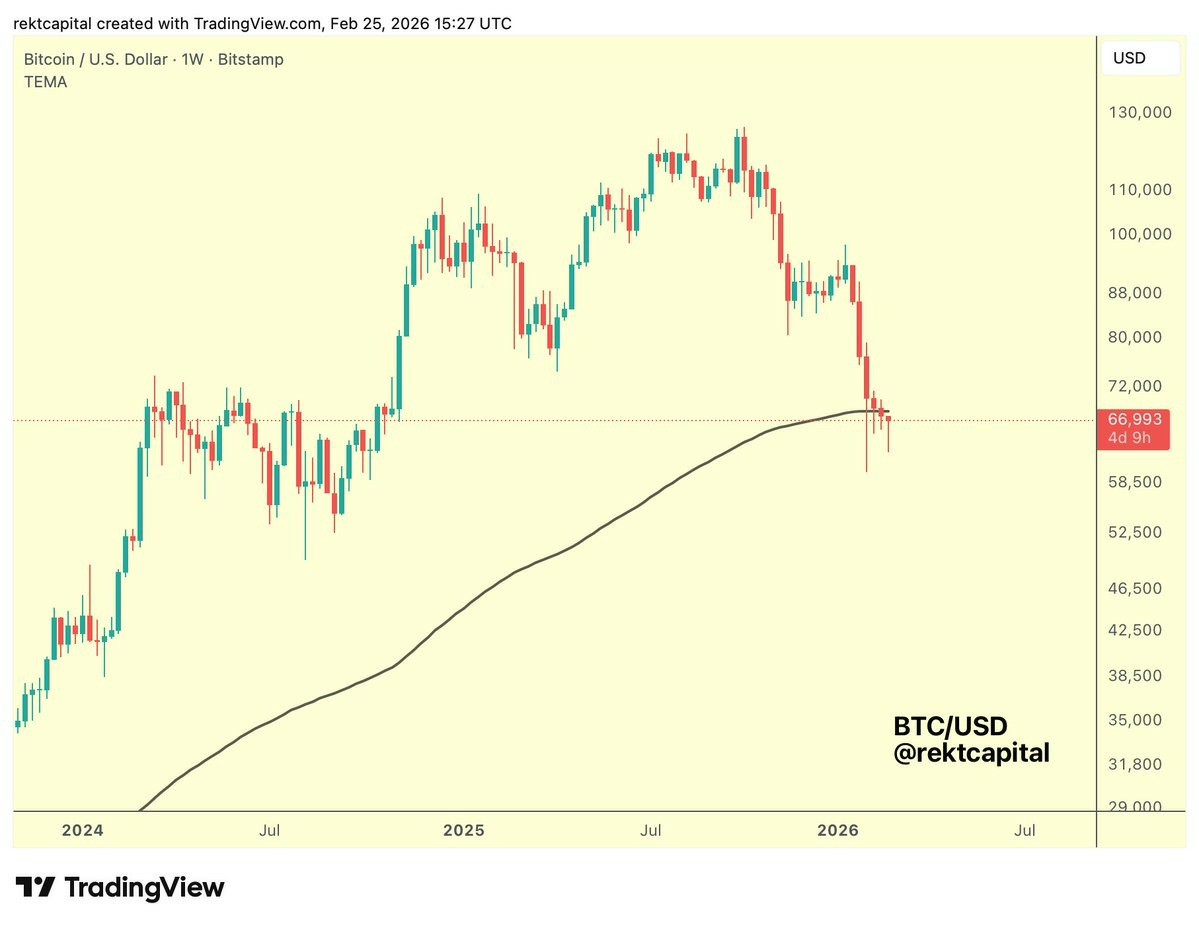“比特币需要在周线收盘时重新站上EMA上方,并将其转化为新的支撑位,从而逆势而行。”