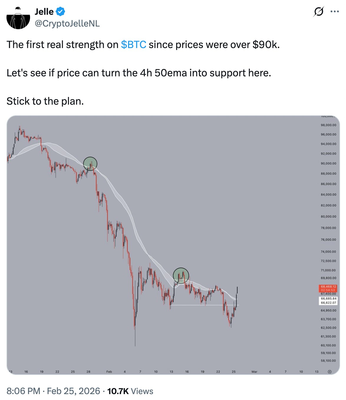 分析师杰勒表示,要确认反弹有效,价格需将四小时图上的50日指数移动平均线(位于68,000美元)转为支撑位。