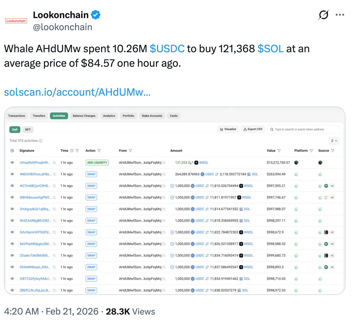 受市场整体回暖影响,SOL/USD 汇率周三一度上涨14.6%,至86美元,而周二曾跌至两周低点75美元。