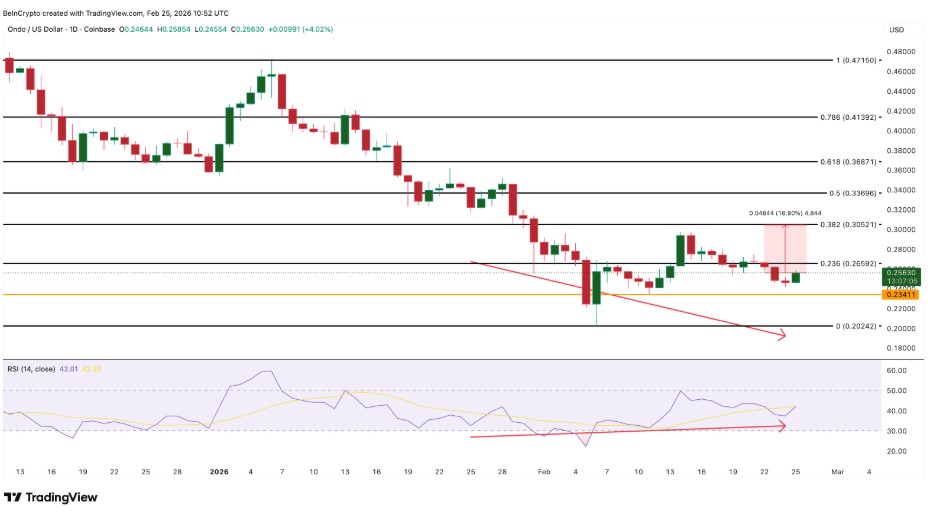 从一月底到二月底,ONDO形成了更低的低点,而相对强弱指标(RSI)却显示出更高的低点。这种看涨的背离与在Stellar中观察到的情况相似。