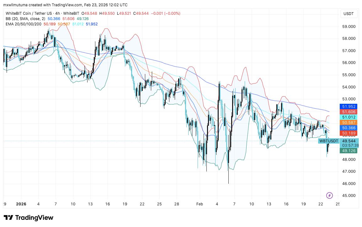WBT币价格分析:WhiteBIT代币测试关键$50支撑位。多头能否重夺历史新高?2026.2.27