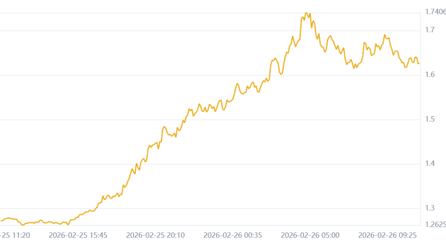 2026 年 2 月现状:最高1.753美元,最低1.101美元,受比特币影响,价格暴跌。