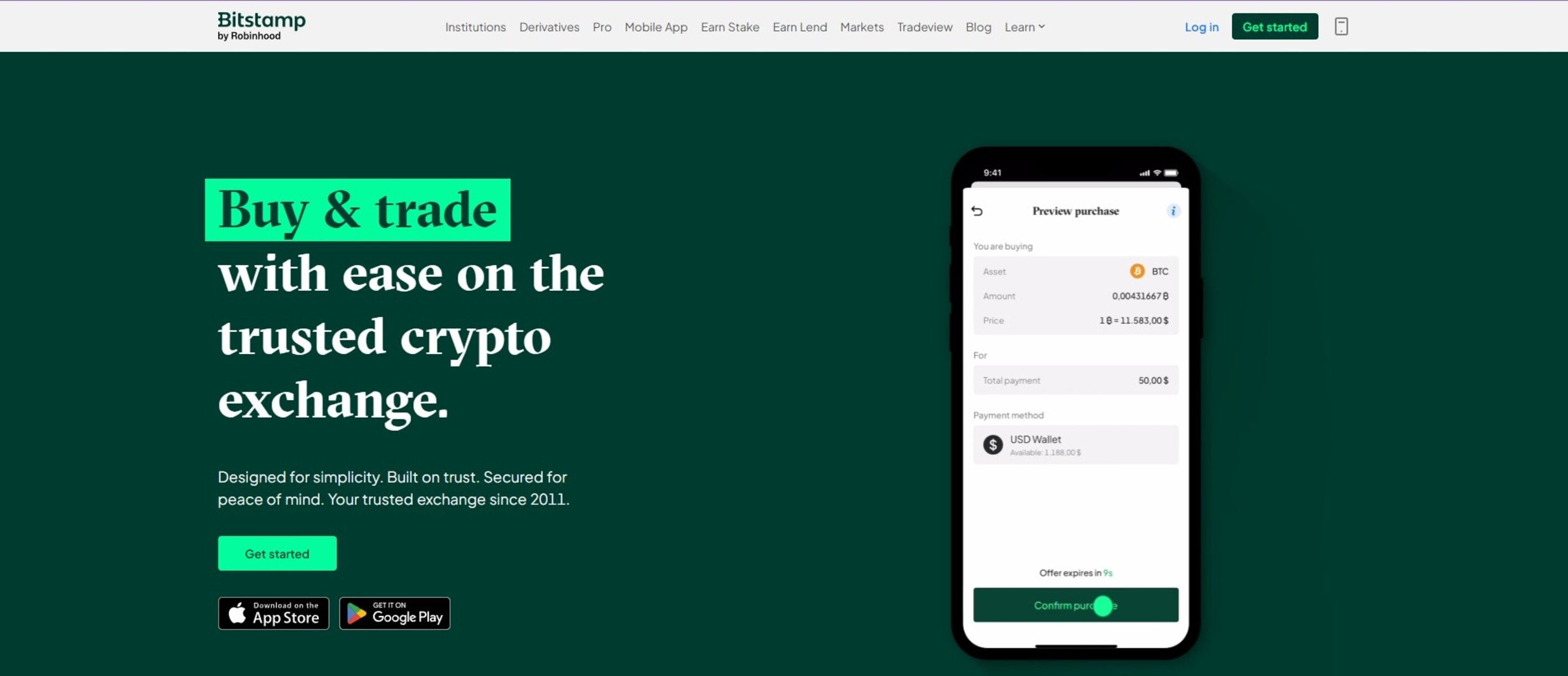 | Bitstamp | 70岁以上 | 0.30%/0.40% 出货人/出货人 | 是的 | 简单可靠的交易 |