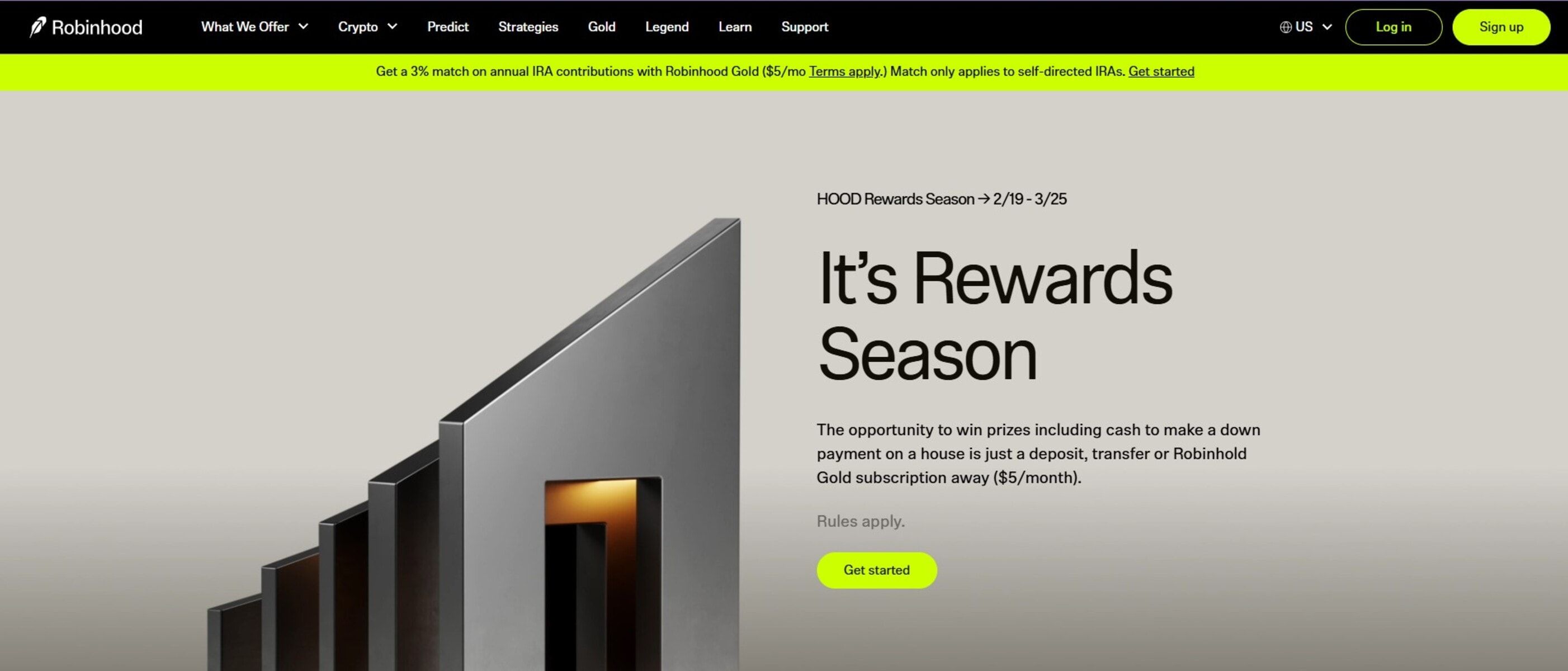 Robinhood是一个总部位于美国的交易平台,允许用户免佣金交易加密货币、股票和 ETF。它支持主流加密货币,包括比特币 (BTC)、以太坊 (ETH)、莱特币 (LTC) 和多种稳定币。