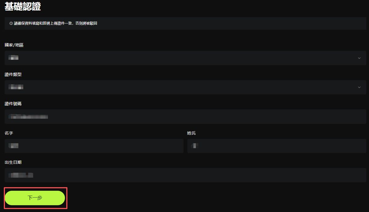 2、选择「基础认证」并点选【去认证】;填写个人资讯后,完成填写再点选【下一步】---【开始认证】。