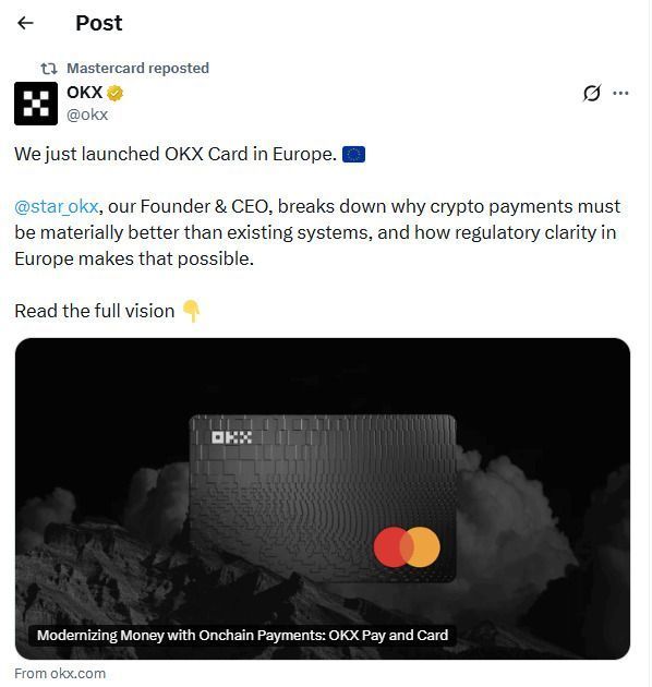 这使得OKX能够在欧洲推出OKX Pay和与万事达卡联合推出的OKX Card等产品。其战略重点正日益从纯粹的交易转向现实世界的支付应用——此举可能会为OKB等生态系统代币带来更多长期需求。