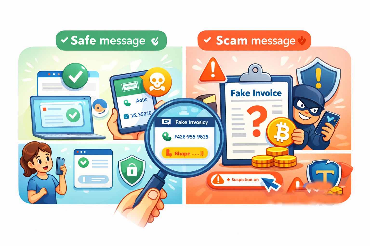 发票诈 骗日益猖獗。您可能会收到一份您从未购买过的比特币的发票。这份虚假发票可能包含紧急字眼和一个电话号码。其目的是让您在冷静思考之前就采取紧急行动。