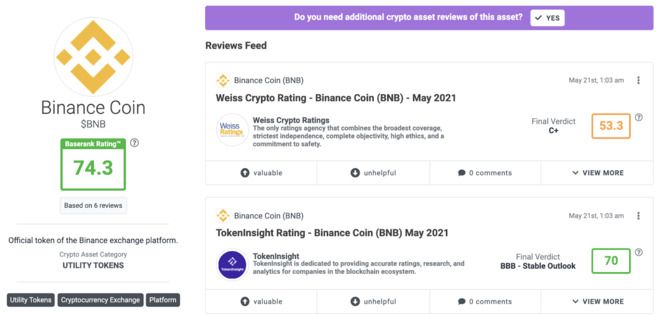 Baserank是一家加密货币资产研究平台,汇集了分析人士和投资者的各类信息和评论。每条评论会对加密货币打分,平台取平均值作为加密货币的总分(0至100分)。虽然平台的部分高级评论仅供订阅者查看,但免费用户仍可查看划分为不同版块的评论综合概述,包括团队、效用以及投资风险。如果时间有限并且希望快速了解项目或代币的概况,Baserank这样的聚合平台正是理想之选。然而,在投资前,必须深入研究自己感兴趣的项目。