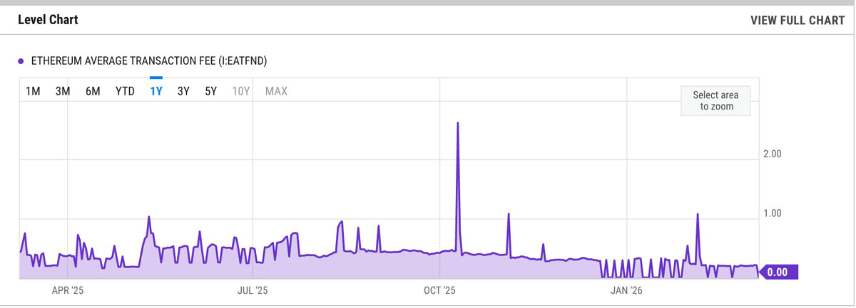 以太坊平均交易手续费。来源:YCharts
