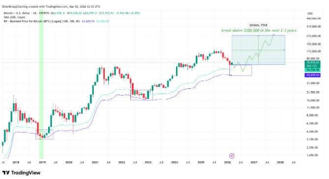 自2015年以来,比特币实现价格带反复与周期低点重合,且自该区间的回暖往往触发数年级别的上涨。