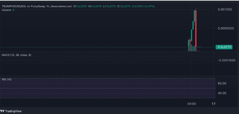 TRUMPHOUSE 是一种全新的 Solana 迷因币,已经表现出极端的波动性——在几个小时内就达到了目前万的市值,然后又恢复到微型市值水平。