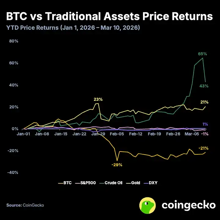 数解2026年至今币圈资产表现:比特币表现最差,原油最佳