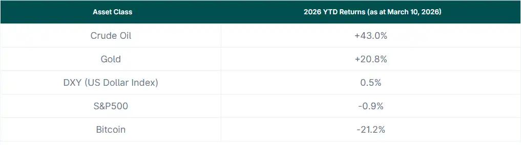 随着伊朗战争爆发,2026 年原油价格飙升速度超过所有其他资产类别。