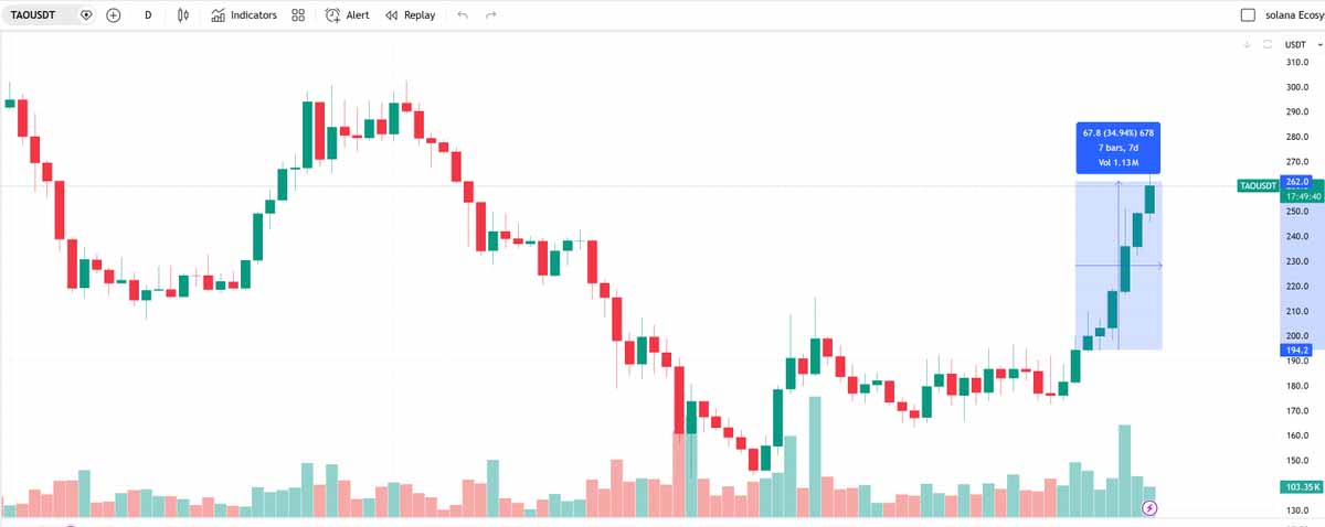 $TAO: 随着Templar宣布完成了72B的大模型训练,TAO在此后上涨超过30%,在BTC的震荡行情中表现出了绝对的强势。