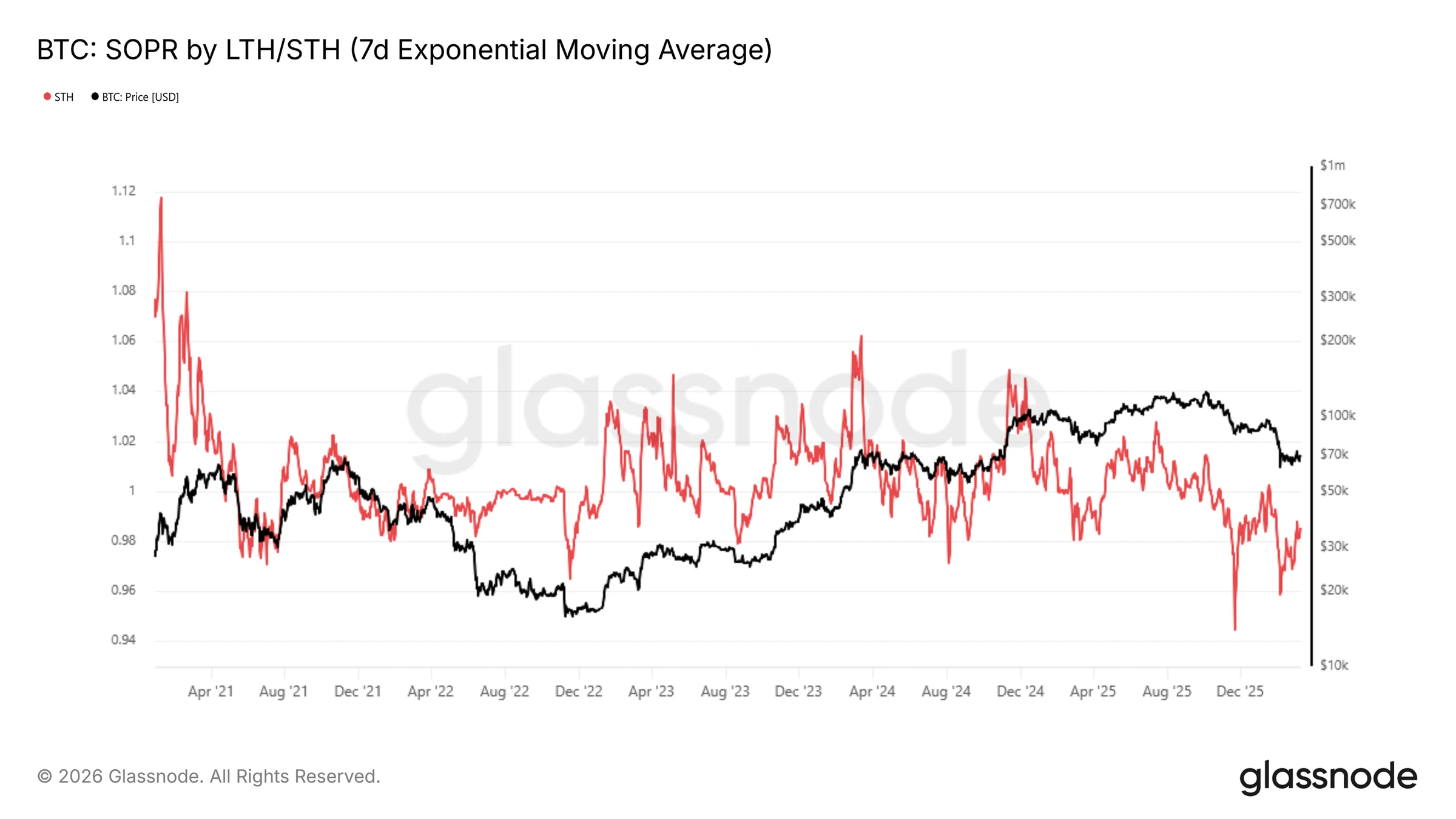 失效表现: 没有老筹 码投降的下跌,不构成传统意义上的周期底部。STH-SOPR 持续低于 1 是熊市确认,但 LTH-SOPR 的拐点何时到来才是真正的底部先行指标。