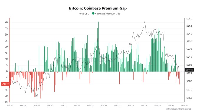 比特币(BTC)三月初回暖走势,价格在70000美元徘徊,底部尚未到达