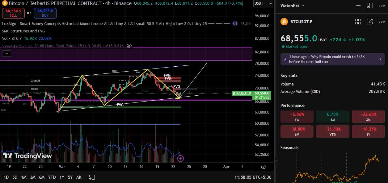 比特币走势分析:在6.8万美元附近维持支撑,但各时间周期技术压力渐增