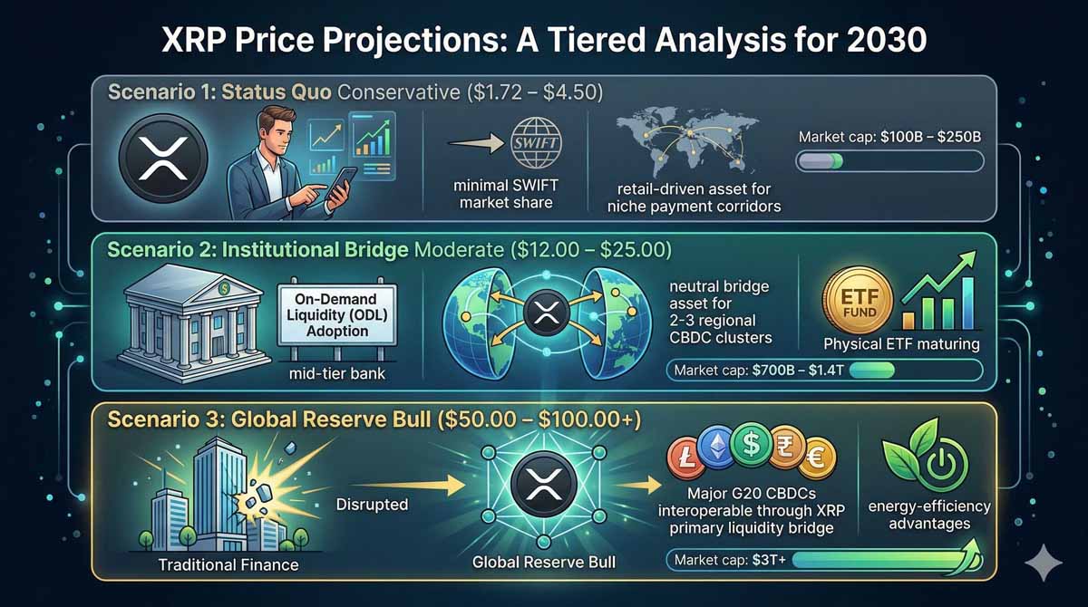 确定 XRP 在 2030 年的价值,需要超越简单的图表模式。这需要审视中央银行数字货币(CBDCs)、机构流动性流向,以及 2025 年 SEC 与 Ripple 诉讼解决后确立的明确监管框架之间的交集。