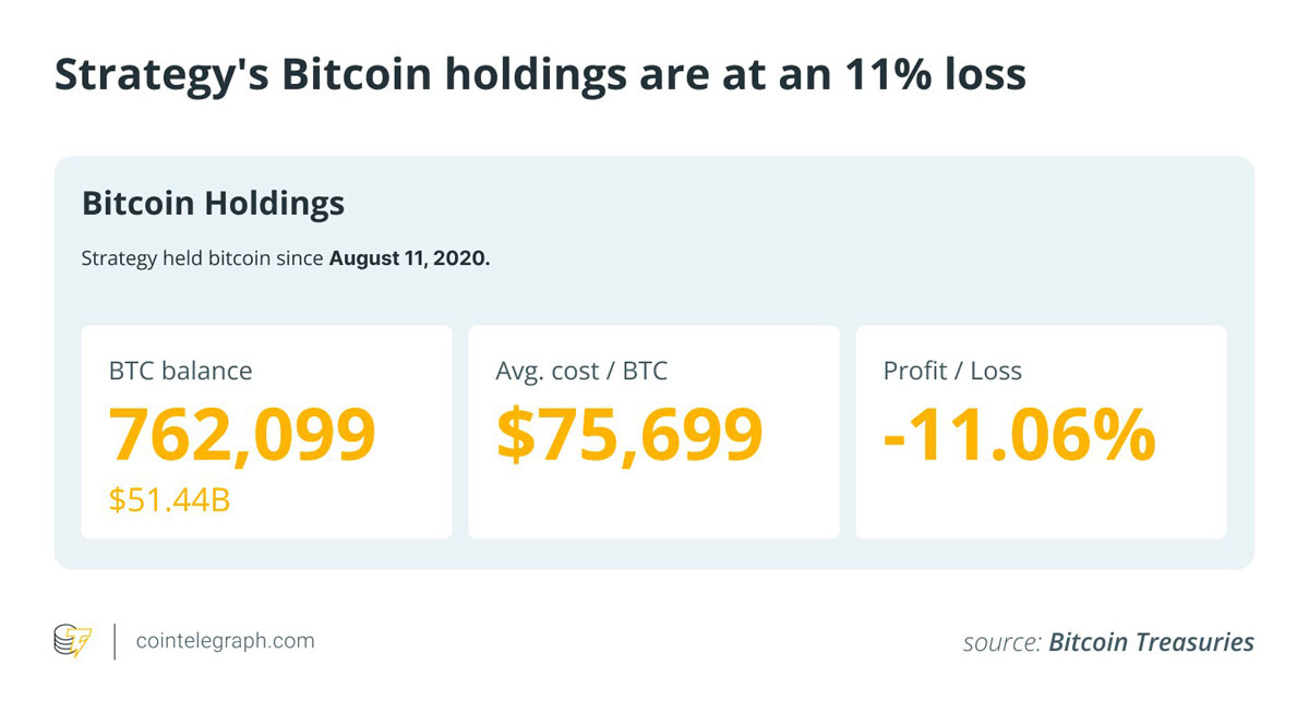 在本月价格表现平平的情况下,Strategy 的比特币组合下跌了 11%。其投资组合中比特币的平均成本为 75,669 美元。截至发布时,比特币的交易价格约为 67,800 美元 。