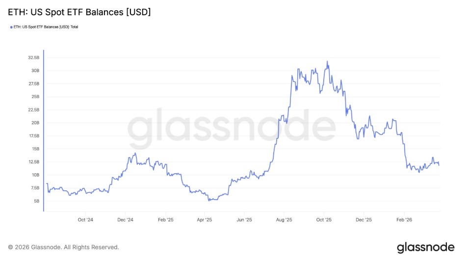 这种疲弱也体现在机构需求上。美国现货以太坊ETF的管理资产规模下降约65%,从去年10月的318.6亿美元降至3月的117.6亿美元,凸显过去几个月市场对ETH的需求明显降温。