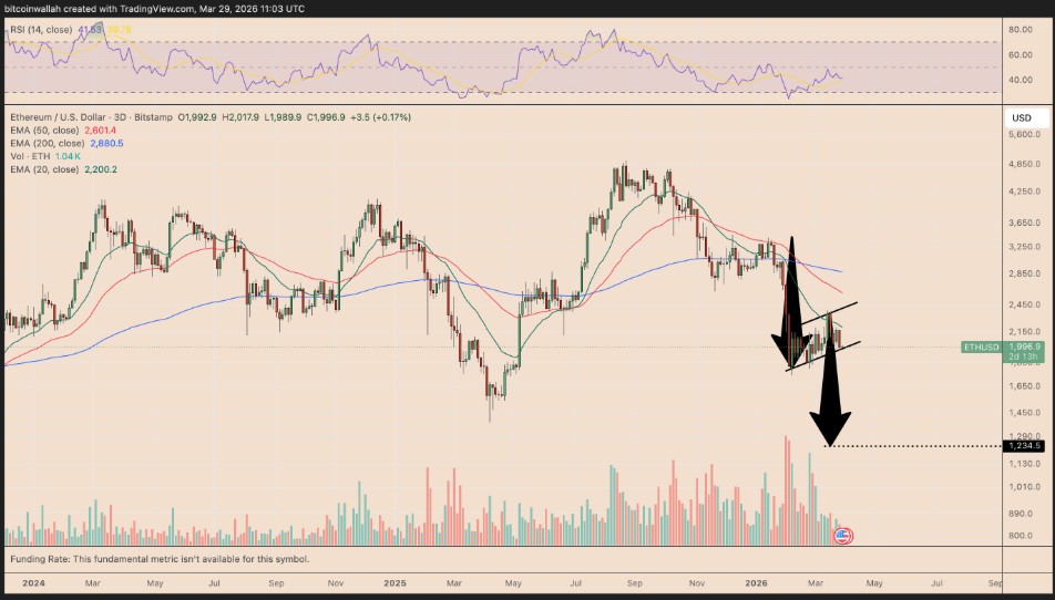 从技术面看,以太坊在2026年面临进一步下跌的风险。
