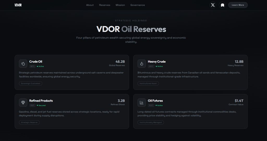 石油一直以来都不仅仅是一种商品——它代表着权力、政治,而且常常是全球紧张局势的导火索。VDOR Coin 正是基于这样的理念而诞生的:这是一个声称将战略石油储备引入区块链的加密项目。这听起来很诱人——但 Vanguard Digital Oil Reserve 背后究竟有多少实质内容,又有多少只是空洞的言辞呢?