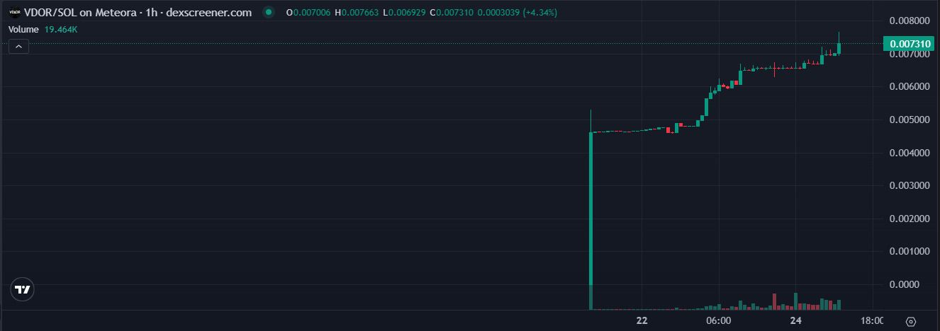 尤其引人注目的是,交易仅仅在几天前才开始(上线时间:约 3 天),这意味着目前的 VDOR 代币价格几乎没有稳定的市场结构支撑,而主要由短期需求、市场动态和投机资本支撑。