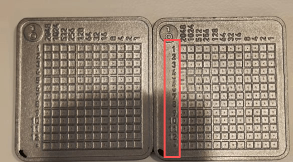 两个钛金属板,一面是1-12个位置,翻过来是13-24个位置。无论你用12个助记词还是24个助记词,安全性都是一致的,因为都是从BIP39表里完全随机排列离线生成的。