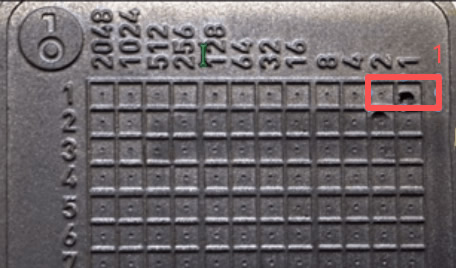 - 看第一个位置的点阵图案,比如只有最后一个位置有孔