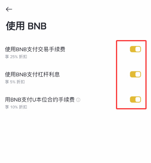 开启后,只要你账户里有足够的BNB,系统就会自动用BNB来支付手续费,并给你相应的折扣。