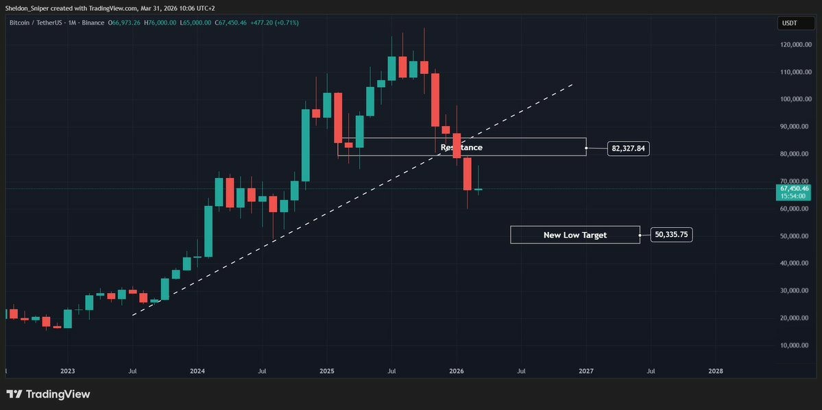 BTC/USD月线图。来源:X/谢尔顿·迪德里克斯