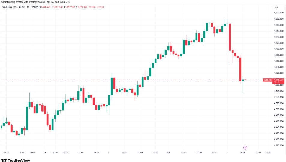 XAU/USD 一小时图。来源:Cointelegraph/TradingView