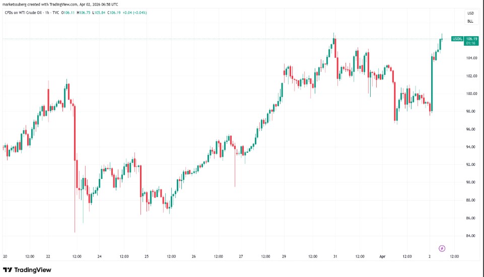 WTI原油差价合约一小时图。来源:Cointelegraph/TradingView