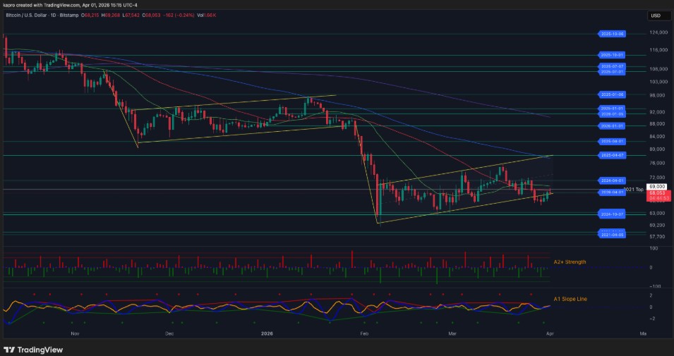 比特币价格预测:多头退潮,波动率走弱,BTC价格锁定6万至7万美元区间