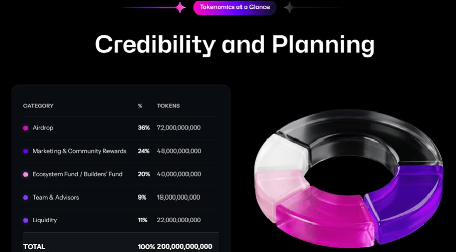 总供应量固定为200,000,000,000 个代币,并且不计划再发行任何额外的代币。
