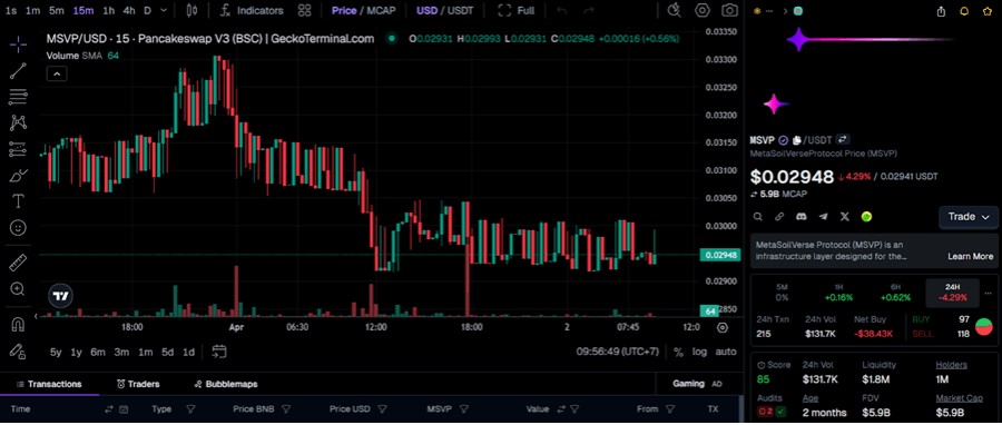 MSVP目前的交易价格约为$0.02948 对USDT,在某些池中略微变化为$0.02941。