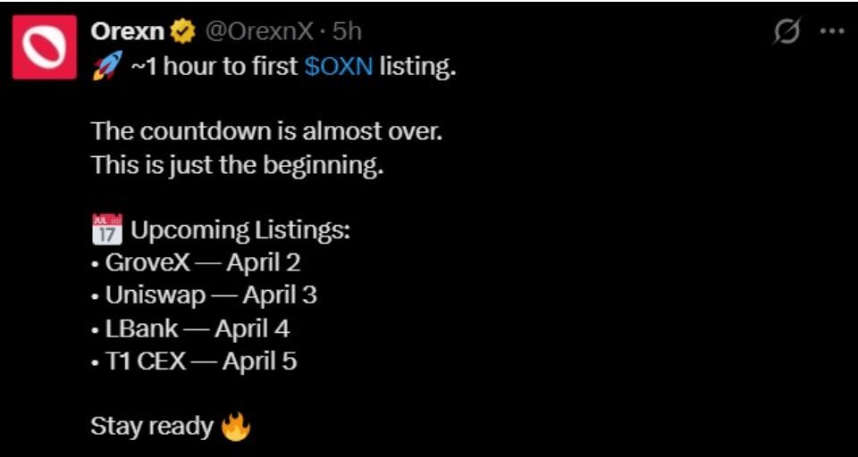 OXN 代币计划于 2026 年 4 月 2 日在主要中心化交易所首次亮相。