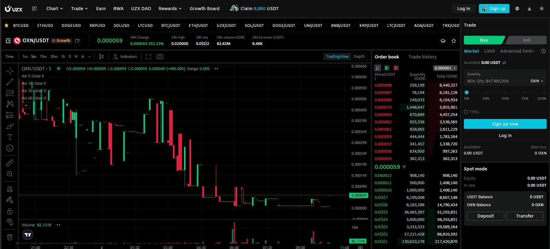 截至发稿时,UZX官方数据显示该代币价格为0.000059美元,比0.0129美元的价格低约98%。图表显示,价格先是急剧下跌,随后出现温和回升。