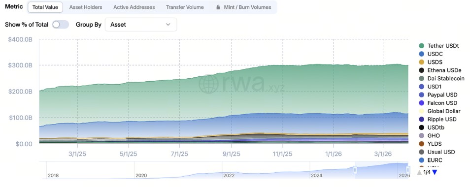 稳定币规模稳定在 3000 亿美元左右,看似波澜不惊,实则暗流涌动。