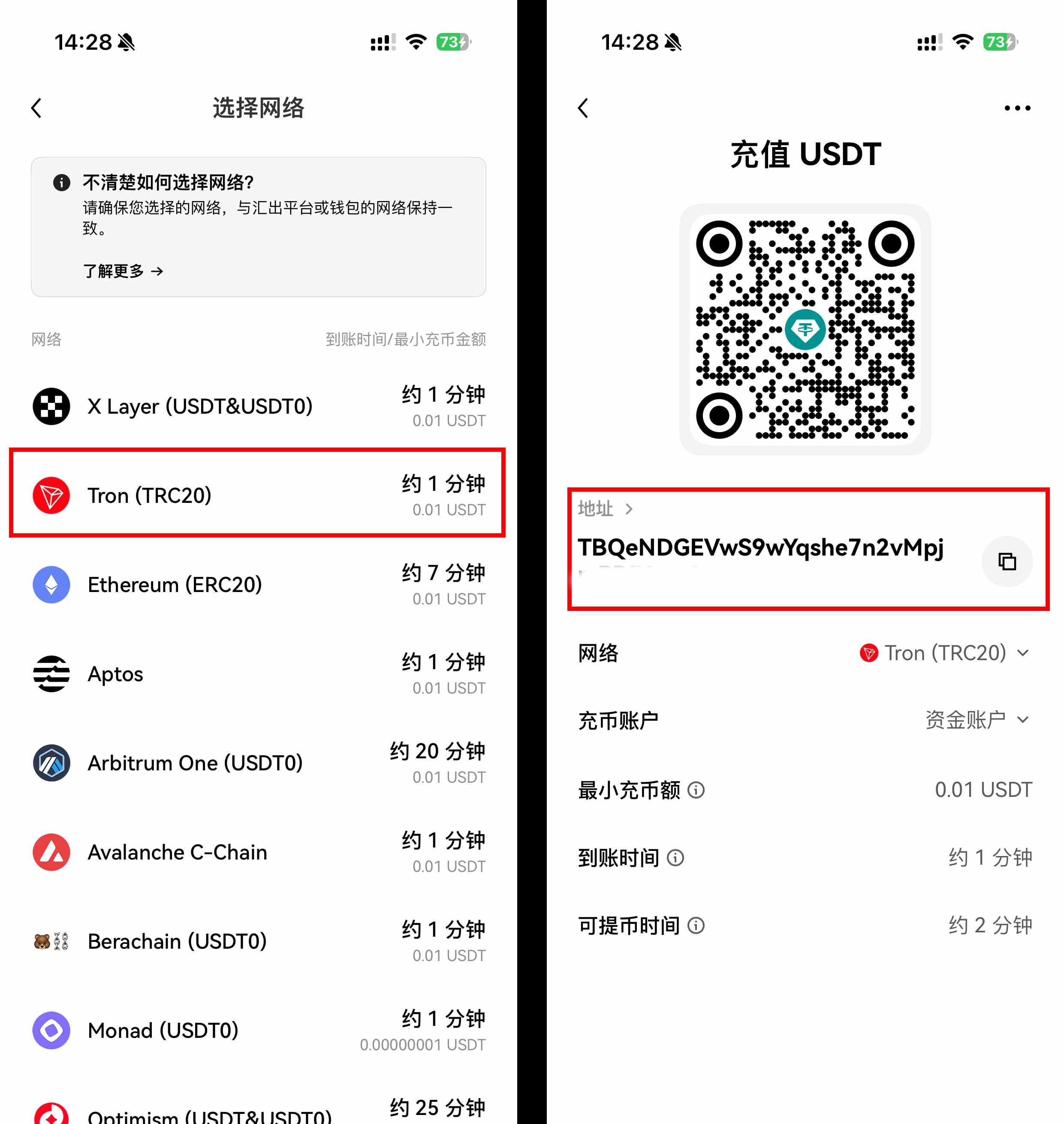 重点提醒:如果你选择TRC20网络,发送方也必须用TRC20发送,否则币会丢失。这就像你选了中通收货,对方不能用圆通发货一样。