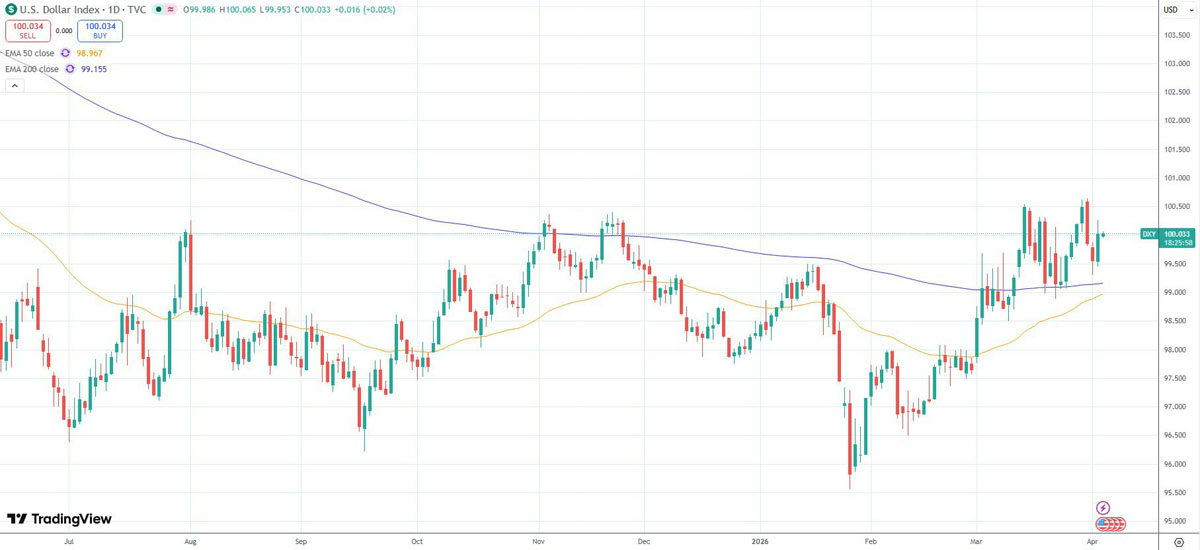 根据 TradingView 的数据,美元指数(DXY)在过去两个月上涨了约 5%。