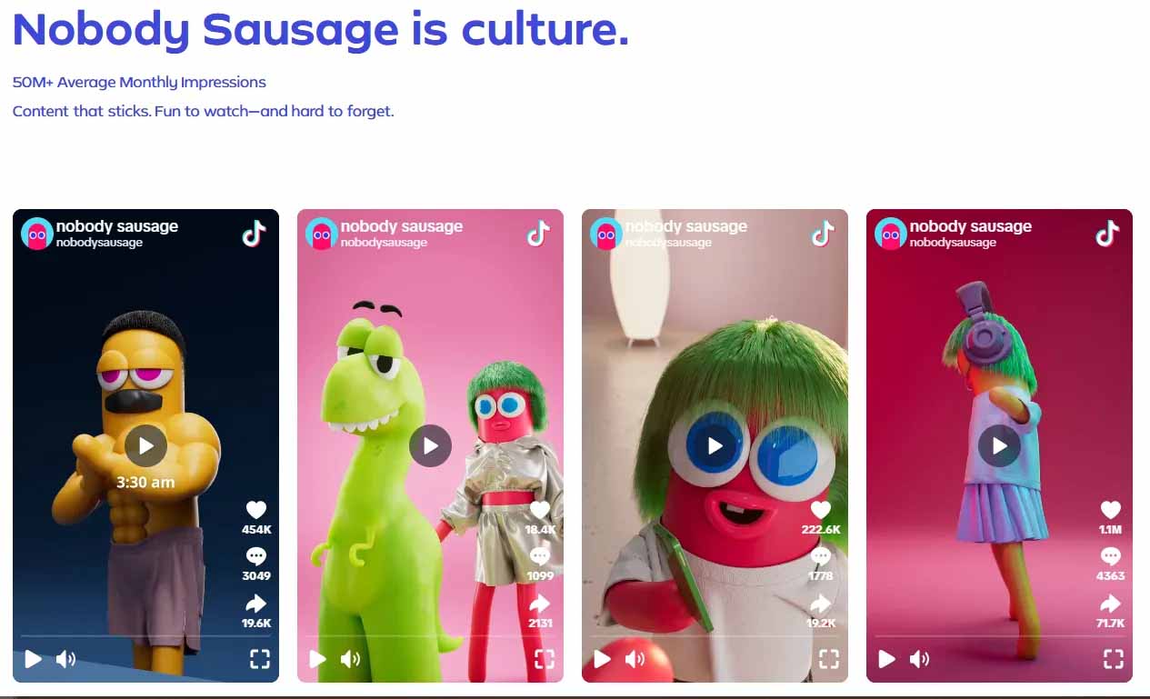 Nobody Sausage的创作者Kael Cabral是巴西动画师,他曾为HBO、Nike、Google和迪士尼工作,并于2020年4月在TikTok上作为角色动画实验推出此角色。