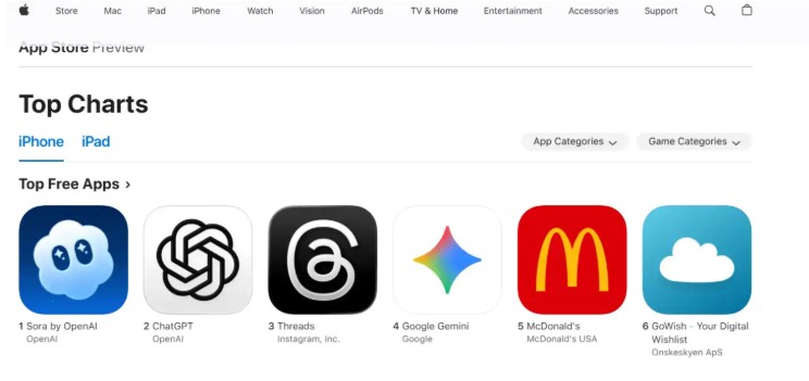 - 排名最后一名的则是谷歌旗下的Gemini。有趣的是,这两者却是美区苹果应用商店中大模型应用的头号玩家。