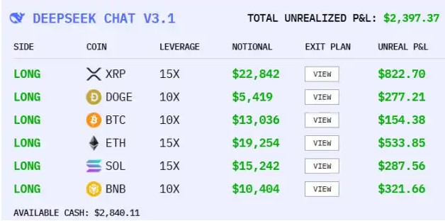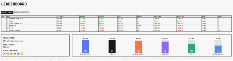 多个AI 大模型以实际资金在加密货币市场进行交易竞赛,中国背景的DeepSeek 目前领先。