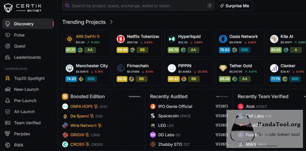 - “防不住”的质疑: 由于客户基数过大(包括大量土狗项目),虽然 CertiK 审计过,但跑路或被黑的项目数量绝对值也最高,常被调侃为“盖章机构”。
