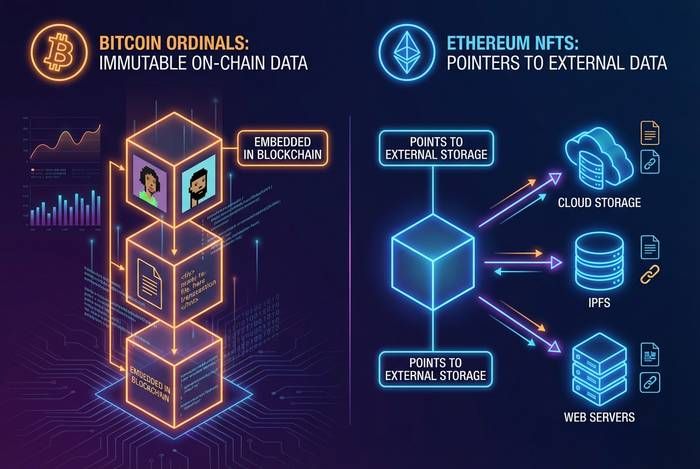 | 永久性 | 不可篡改,与比特币同在。 | 取决于元数据托管的位置。 |