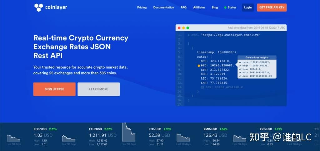 Coinlayer API是最好的实时数据API之一,它使用Coinlayer的REST API为您提供JSON格式的实时加密货币汇率。它涵盖了超过385种加密货币。Coinlayer API在过去12个月的正常运行时间为99.99%。Coinlayer提供订阅包,您可以随时升级或降级。