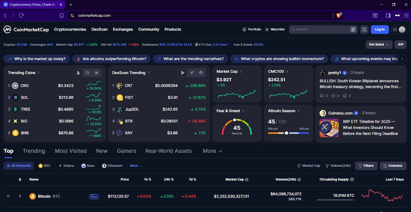 CoinMarketCap 由币安(Binance)拥有,是面向散户的加密数据领域的市场领导者。其 API 被钱包和消费者应用广泛采用。