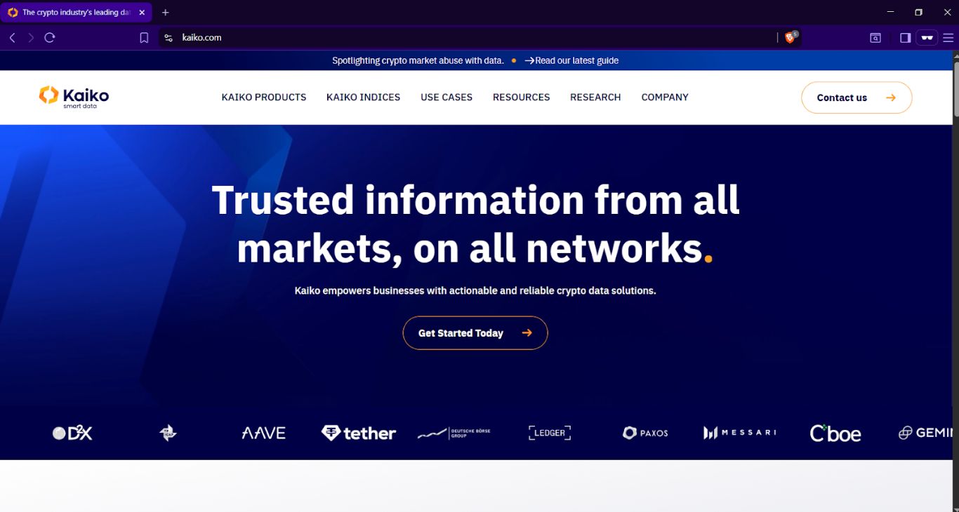 Kaiko 专注于订单簿、流动性和中心化交易所的交易数据,是金融机构进行量化研究的领先数据提供商。